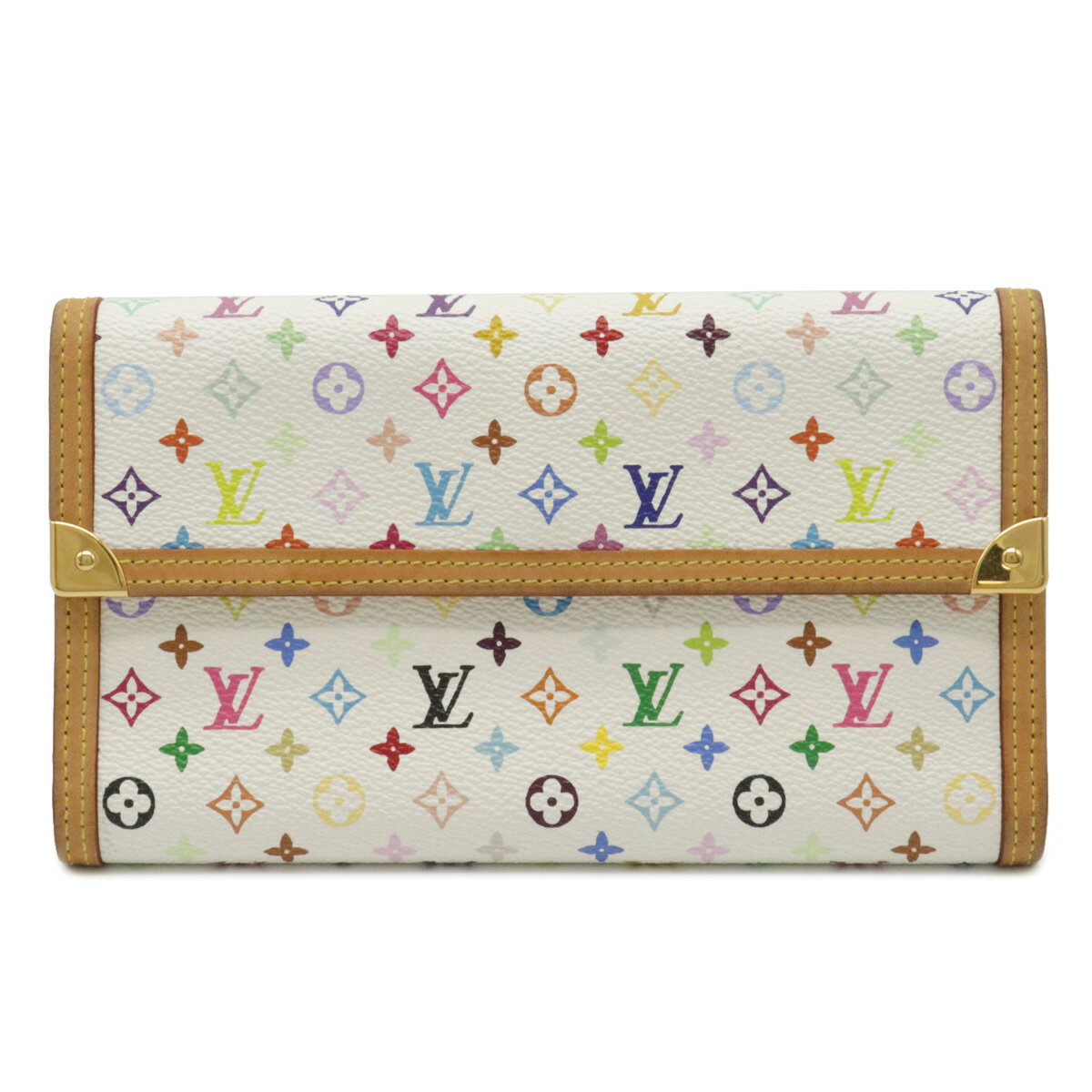 【財布】LOUIS VUITTON ルイ ヴィトン モノグラムマルチカラー ポルトトレゾール インターナショナル 3つ折長財布 ブロン 白 ホワイト M92659 【中古】